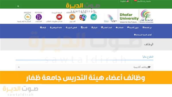 تعتبر جامعة ظفار واحدة من أبرز الجامعات في سلطنة عمان، تسهم بشكل كبير في تطوير التعليم العالي في المنطقة، وتتميز بتقديم بيئة تعليمية متميزة، إلى جانب جهودها المستمرة في البحث العلمي وخدمة المجتمع، وتعلن جامعة ظفار كل فترة عن توافر فرص عمل عديدة للمواطنين في مجال أعضاء هيئة التدريس، ويعرض موقع صوت الديرة الوظائف التي أعلنت عنها جامعة ظفار لأعضاء هيئة التدريس.